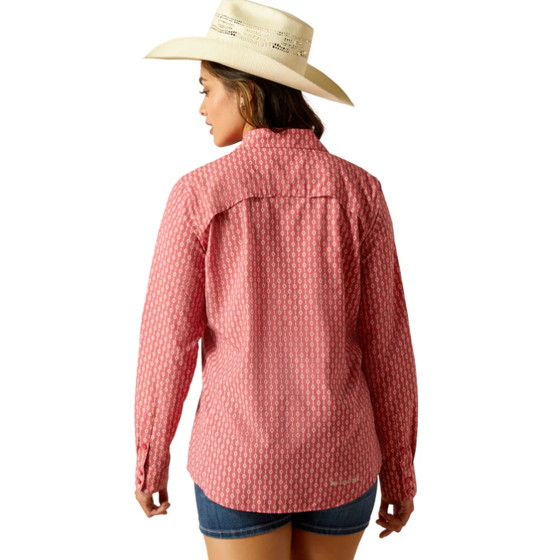 Esta camisa Ariat con botones delanteros, probada y preparada para montar, cuenta con paneles laterales VentTEK™ para la circulación del aire y tecnología de absorción de la humedad.