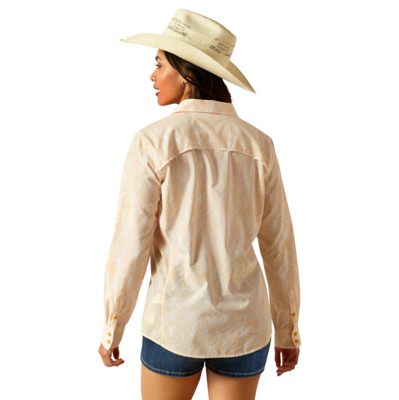 Esta camisa Ariat con botones delanteros, probada y preparada para montar, cuenta con paneles laterales VentTEK™ para la circulación del aire y tecnología de absorción de la humedad.